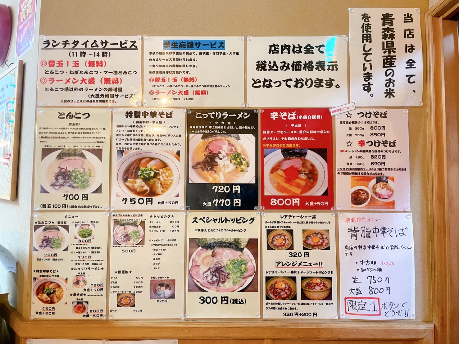とんこつ系のコッテリ系が壁に並んでいます。