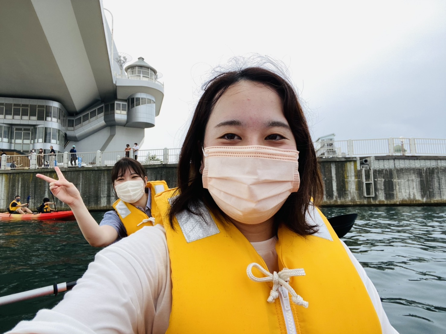 風はそんなに強くなかったのですが、カヤックは結構揺れます。 酔いそうになりました。