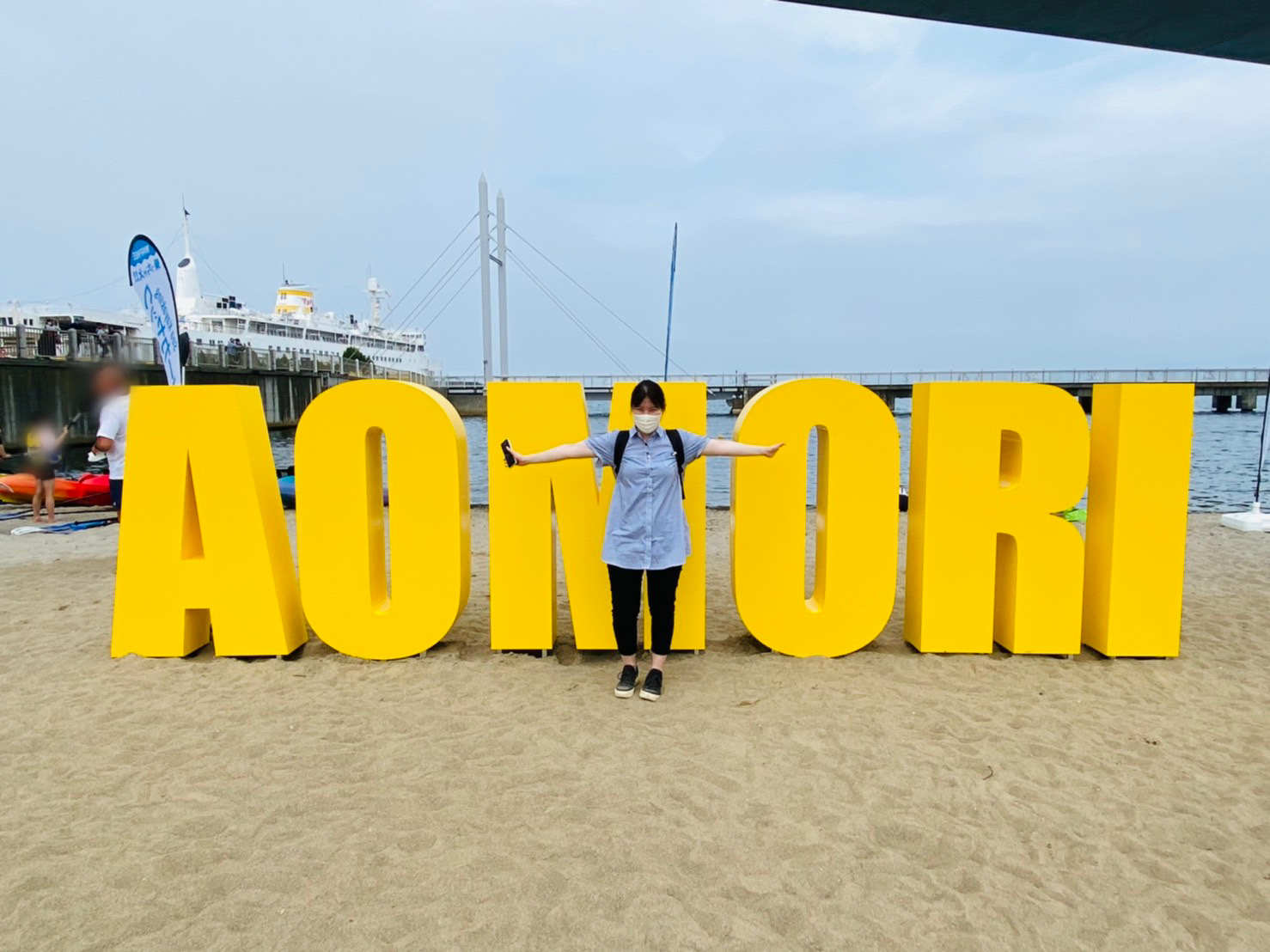 ビーチの真ん中には、「AOMORI」の文字のでっかいオブジェクトがありました!