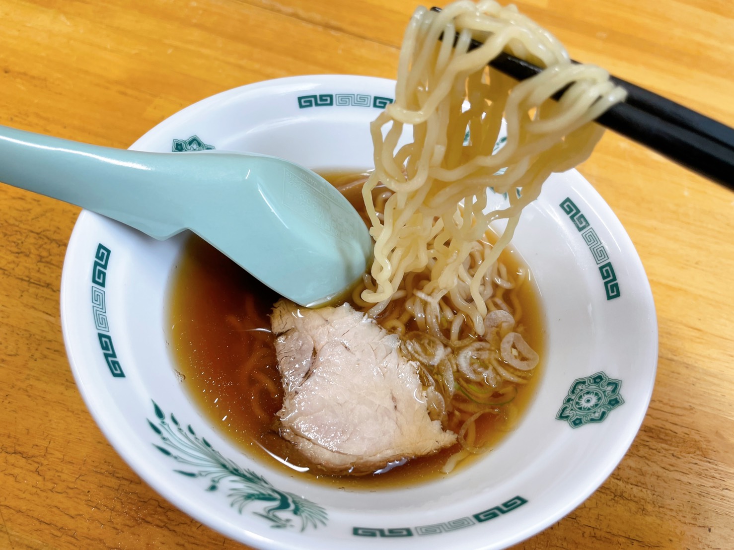 スープの透明感を見てください! とても透き通っているのです。朝ラーでも重すぎず、食べやすいことが人気の秘密なんですね♪