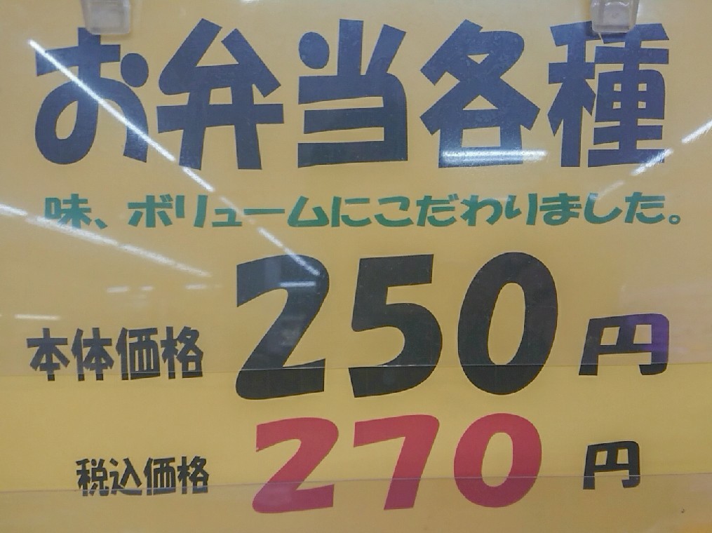 スーパー福やさんのびっくり弁当は全て250円(税込みは270円)とコスパはなまるで種類も豊富です!