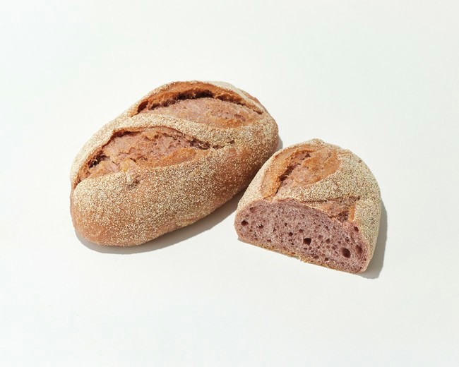 とかち小麦ヌーヴォー使用。カンパーニュ生地に青森県産リンゴと紫芋のペーストを練りこみ焼き上げました。
