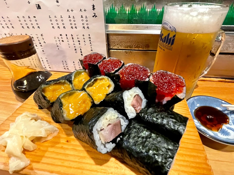 それにしても、やはりこの筋子巻きの迫力は、来店客がSNSで拡散するたびに全国に知れ渡り、今や青森市の観光名所と言わんばかりです。筆者はもともと東京出身で、東京に友人知人がたくさんいるのですが、そうした友人知人とばったり三九鮨で出くわしたりします。