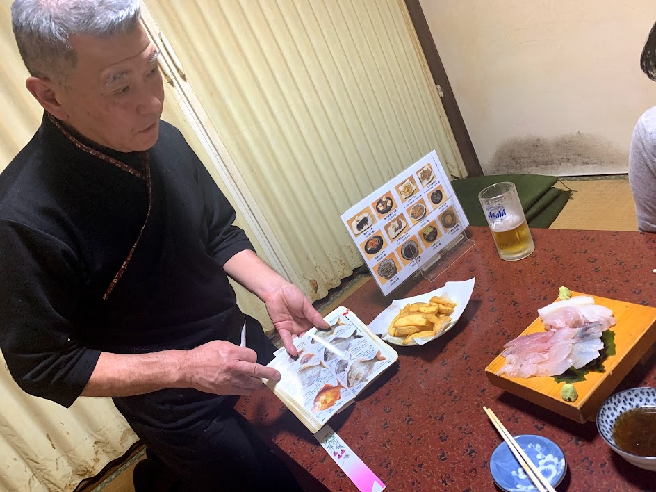 さらには店主であり大将の小野功さんが、図鑑を持ってきてくれて、どの切り身が何の魚なのかを、詳しく説明してくれます。