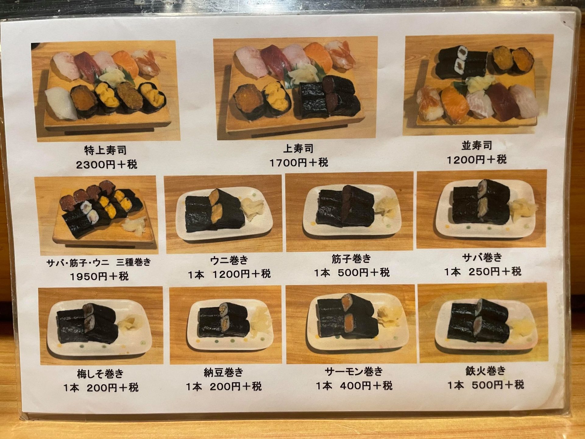 三九鮨では、あらかじめ巻物メニューも用意されていますが、お願いすれば何でも巻いてくれます。こちらは定番メニューとして用意されている巻物です。
