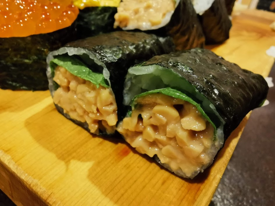 ちなみにこちらはまだ健全だった時代、2018年ごろの納豆巻きです。(手前が納豆巻き)