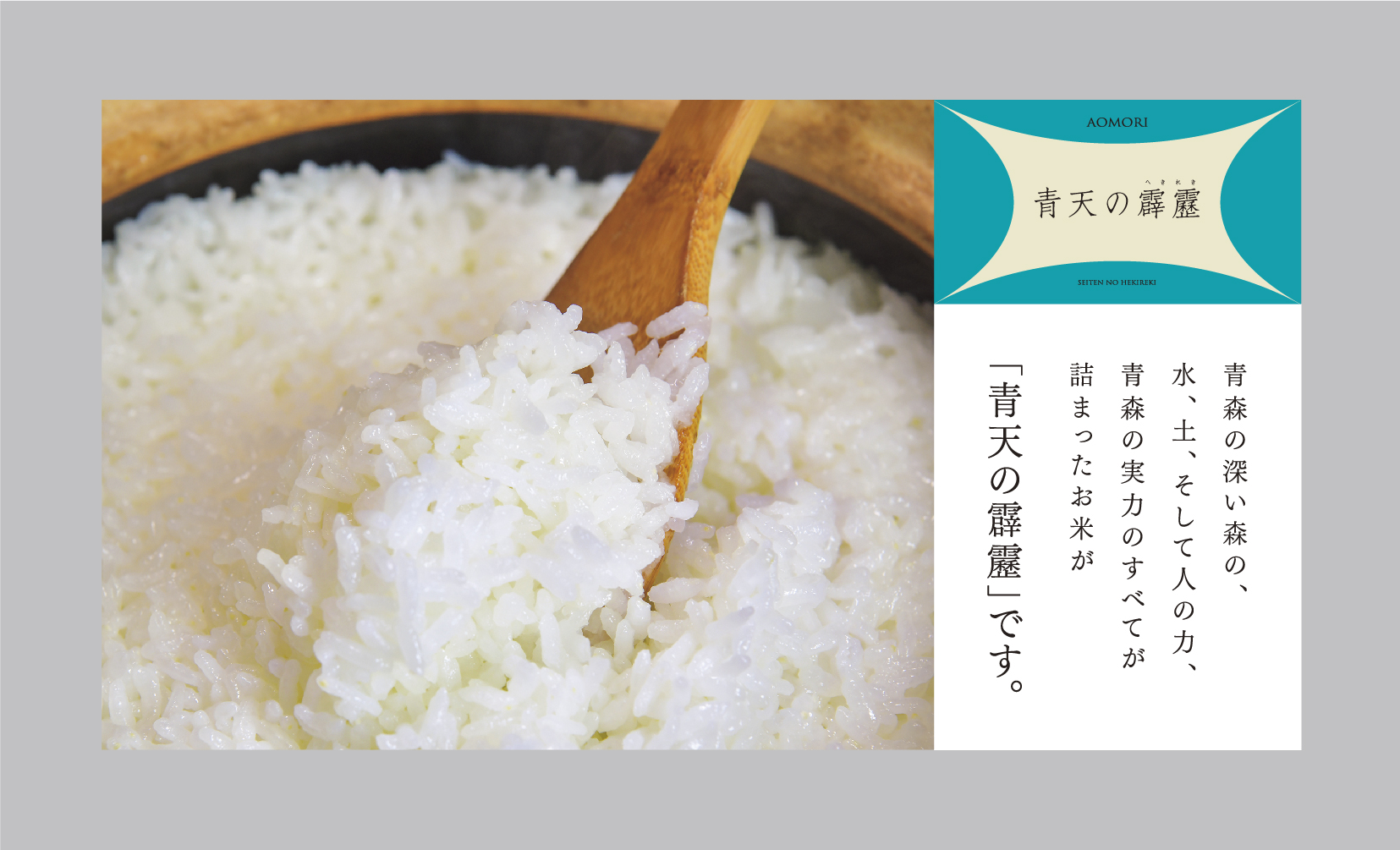 広告の内容は、2021年7月にユネスコ世界文化遺産に登録された「北海道・北東北の縄文遺跡群」と青森米「青天の霹靂」をモチーフとしたデザインになっています。